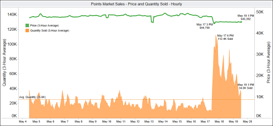 Anyway, a further 3,333,260 points were sold on the points market between the 17th and 19th of May, hence why their market value fell so sharply. The points market graph shows that prices dropped to $45,394 on the 19th of May, and that's the lowest they have gone so far at the time of writing on the 20th. Or is it?