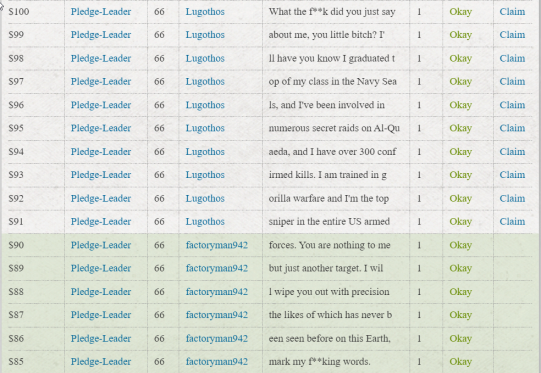 At this point, I did feel quite bad for calling this story "You Stupid Bastard". At least I did until DeathKnell sent back the Donator Pack I sent him for his story with the following message: