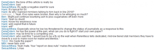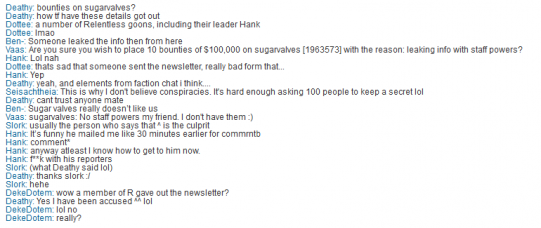 The attacks on Aaashh aren't the only form of news suppression being conducted at the moment either. Z_junior of JFK has even gotten involved, telling one of his faction members, a TCT reporter, to avoid writing an article about this merger before it happens.This means that Relentless and JFK have communicated regarding this merger. Make of that what you will. We have been reliably informed that Z_junior is close to MnC, so it is more likely that this request for silence came from their side, rather than Relentless.