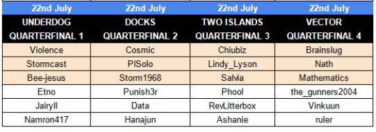 Pictured: URT Summer 2021 quarter-final results.