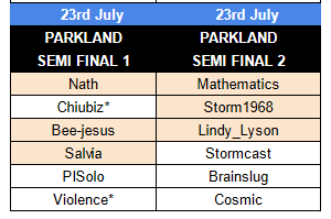 Both semi-finals then took place at Parkland on the 23rd of July. Semi-final one saw 2nd-ranked Nath go through alongside Chiubiz in second and Bee-jesus in third. At this stage, Salvia had been knocked out, with PISolo and Violence joining her on the sidelines.