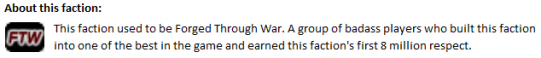 "The sad part was to see this faction with a deep rich history go away. The legacy of FTW is woven into what Torn is today. A lot of currently active and former active Torn players have had a part in building this 8 million respect faction."