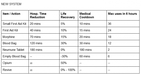 seen as a good thing. If a few small changes were made to their cooldown limits, there appears to be little else that needs to be tweaked on this front. Of course, everyone will disagree on the exact numbers involved, but I don't see many calling for a complete overhaul of the medical system, simply a little change here and there.