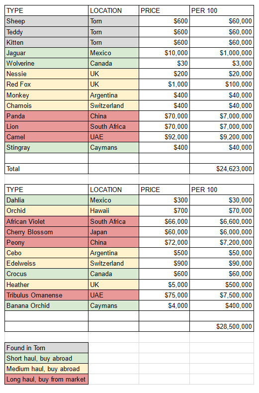 The first thing to note is that it is massively inefficient to buy all of your plushies or flowers from abroad or from Torn. Some of these items are worth traveling for when you buy in bulk, whereas others are not worth the cost of a flight - and that's true even if you have free flights, as time is money, people!