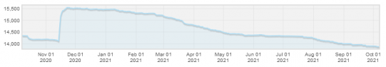 Small First Aid Kits were going for $4,166 on the 1st of August, peaked at $7,118 on the 11th of September, and are now valued at around $5,000. Likewise, First Aid Kits were priced at $6,613 on August 1st, hit a max of $10,823 on September 11th, and are now valued at roughly $7,600. These two items often enjoy another rise during October ahead of Dog Tags and Halloween, but this may be slightly subdued this year due to the rescheduling of the former to May 2022.
