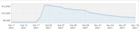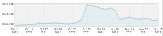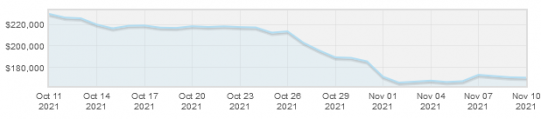 We saw a huge rise in the price of Feathery Hotel Coupons during late October, but these gains were temporary. FHCs hit $14.5 million on the 30th, but are now down to their pre-rise price of around $13.5 million. The demands of Halloween and war saw 20,000 removed from circulation between the 24th of October and the 1st of November, but their numbers are now picking up once more.