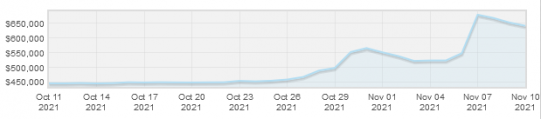 In 2019, the 150 happy candies (Jawbreaker, Pixie Sticks, Sherbet, Humbugs) rose from $350k in mid-October to $1.5 million one month later. 2020 saw a less severe rise take place over a longer period of time, with their price of $400k in late September growing to $828k by the 9th of November. This year, the candy rise began as early as August, with their $300k value growing to $450-475k at the time of writing.