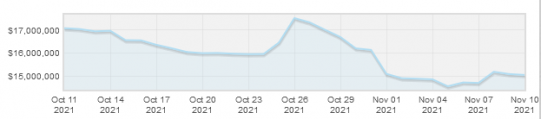 Donator Packs rose by $300k during late October, but have now fallen below $23 million. Two notable circulation increases were noticed this month too, with 6k and 10k events caused by one-off large donations.
