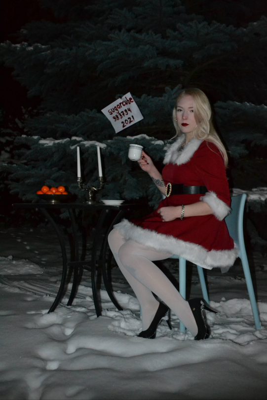 This contest was won jointly by Sugarcube and Carp. Sugarcube braved the cold by staging some kind of gothic tea party outside in the snow while dressed as lady Santa. I don't know who took this photo, but Sugarcube's expression communicates one clear desire above all else: "Hurry the f**k up and take the god damn picture."