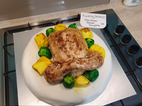 The winner of the baking competition was RiceWilly, who made a Christmas dinner snowglobe cake in the shape of a turkey. The inside of the cake also looks nice and moist, but it was the full, uncut version complete with roast potatoes and sprouts that got him over the line. Congratulations RiceWilly, you're Torn's very own Heston Blumenthal.