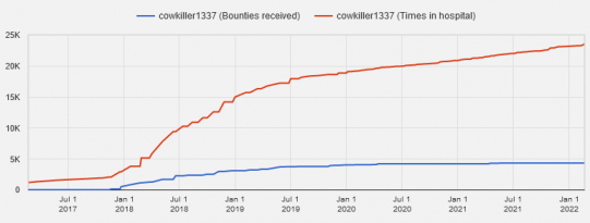 Pictured: cowkiller1137's bounty and hospital graph.