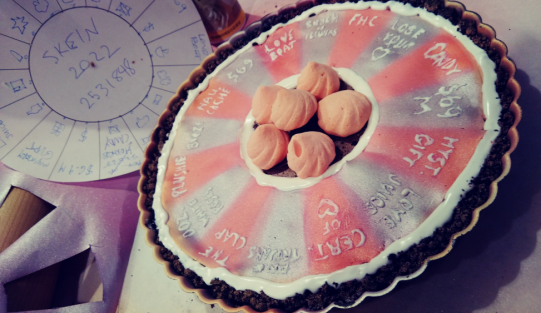 Skein was given second place for their spin the wheel cake which celebrates their winning of a PI several months ago. Skein put in a good amount of effort to ensure that the writing on their wheel was legible, and the addition of strawberry meringues in the centre makes Leslie's regular wheel look like a pile of bland old s***e.
