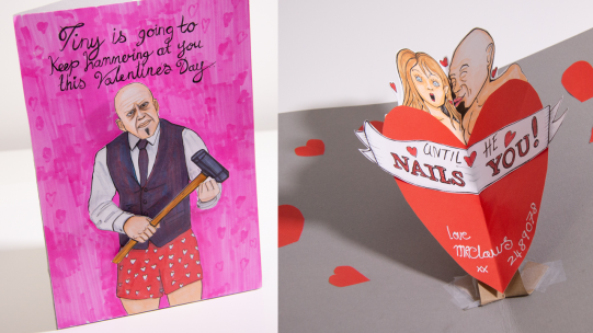 Our winning Valentine's Card entry was sent in by MrClaws. Their depiction of NPC henchman Tiny was a sight for sore eyes amid a sea of Duke and Leslie-themed entries, and we also enjoyed the rather graphic sentiments expressed in the card's message. But if truth be told, bogie and I are simple, simple bastards, and we mostly liked this card because it was all moveable and poppy-uppy, as you can see from the video below.