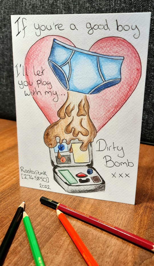 The first of two third-placed entries was provided by Rastapunk. Their hand-drawn effort used the medium of the Dirty Bomb to reference backdoor shenanigans, an act which is traditionally performed by couples on Valentine's, birthdays, and when she's had too much to drink.
