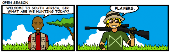 Slockins101 has won our Economist's prize for the third fourth I can't remembereth time, with their submission on Monarch's South African manhunt amusing our judge Lt_Wolf.