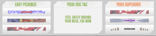 The Dog Tags page will now contain extra data regarding your peers in the competition. A panel called Easy Pickings will show the names of three inactive players at your stat range who still have dog tags. If no such players exist, players who are lower or higher than your stat range will be displayed instead.