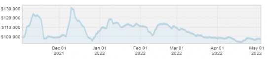 The 30e cans have stayed around $3.5m-3.6m in value for the past few months, with any dips or gains quickly rectified. 25e cans have behaved slightly differently, with a slow but steady rise giving way to a sudden $100k price jump over the past few days. 20e cans have enjoyed a similarly sharp rise recently, with $80k added since April 23rd.