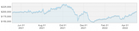 Pictured: Banana Orchid one-year price graph. Larger Link