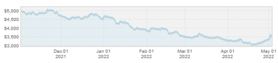 Pictured: Gold Easter Egg six-month price graph. Larger Link