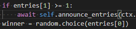 These accusations of shenanigans within the shenanigans Discord appear to be entirely without merit, and we can prove this by showing you a snippet of code from the Discord bot responsible for choosing the lottery winners. This code grab was provided by Torn's trusted staff member Stewie, who is also responsible for writing the code itself.